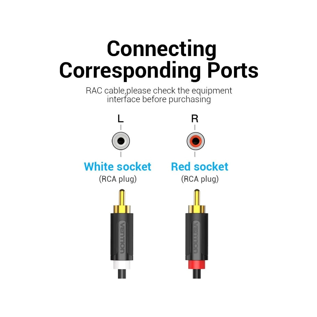 Кабель мультимедийный 2xRCA M to 2xRCA M 1.5m black Vention (BCMBG)