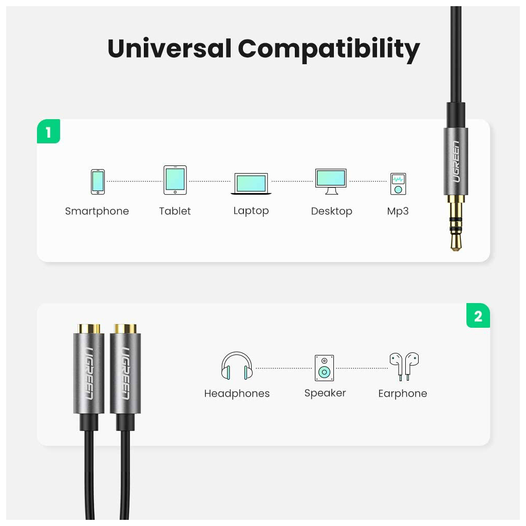 Кабель мультимедийный 3.5mm M to 2x3.5mm F 0.2m AV123 black UGREEN (10532)