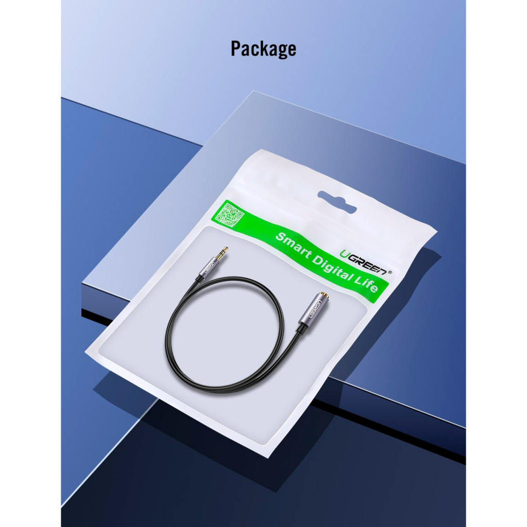 Кабель мультимедийный 3.5mm M to 3.5mm F 1.0m AV118 gray UGREEN (10592)