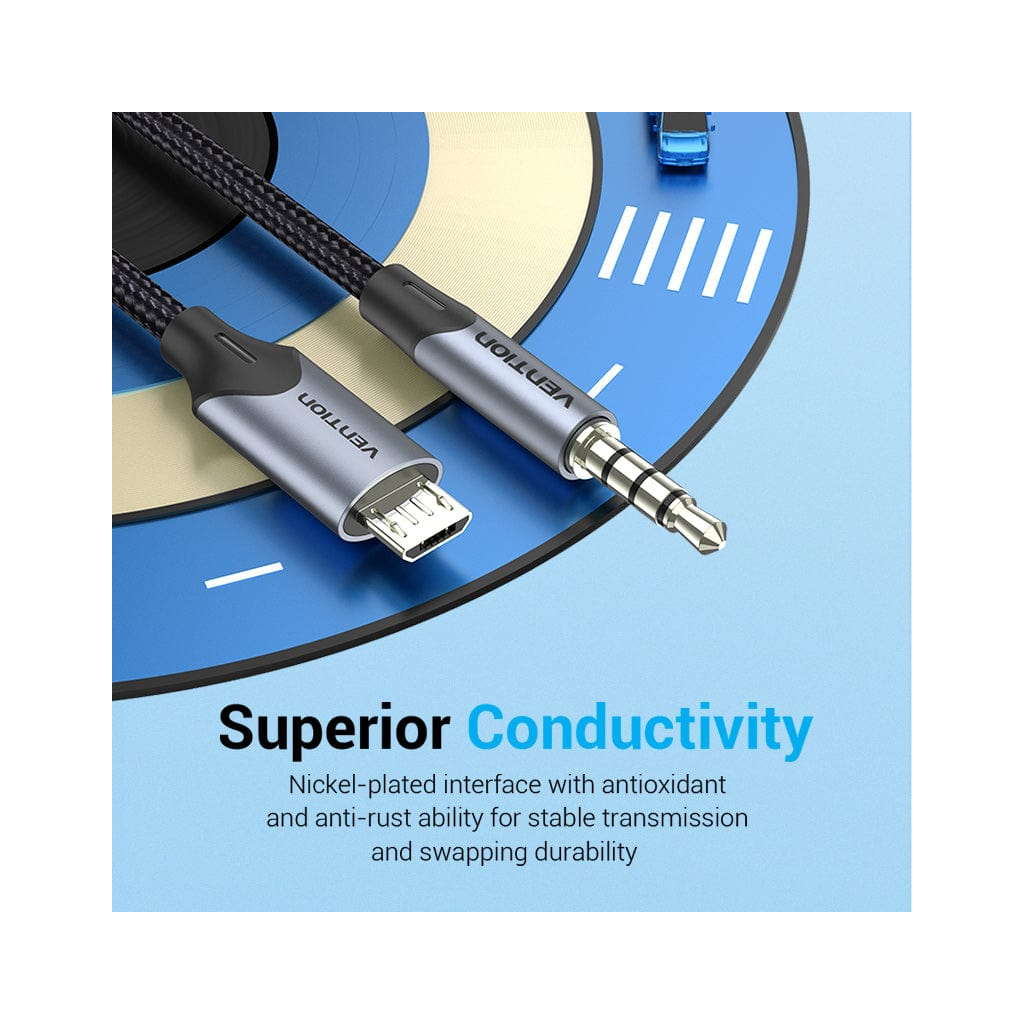 Кабель мультимедийный Micro 5P M to 3.5mm M 1.0m (4pin) black Vention (BDGBF)