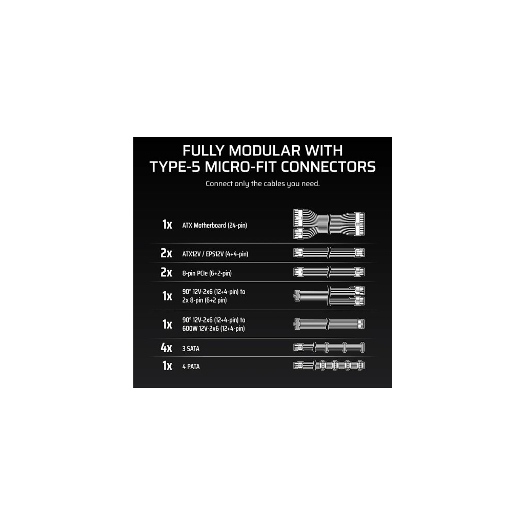 ATX, 750 Вт, CPU - 4+4pin, GPU - 2x(6+2pin), 1х16pin (Gen 5), SATA - 12, Peripheral - 4, +12V1 - 83.3A, 1x140 мм, 160 х 150 х 86 мм