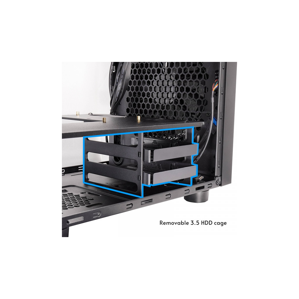 Одним из наиболее заметных преимуществ модели является совместимость с видеокартами длиной до 335 мм, что позволяет устанавливать даже самые мощные решения для обработки графики. Кроме того, предусмотрены два отсека для 3.5" HDD и два для 2.5" SSD, благодаря чему вы можете легко настроить систему с необходимым количеством места для хранения данных.