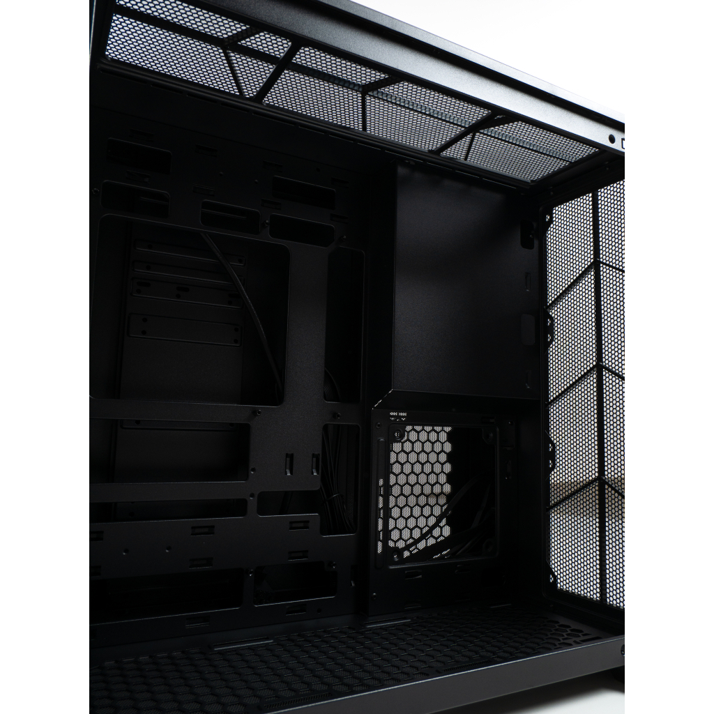 Внутренние отсеки предназначены для расширения вашего хранилища: доступно три внутренних отсека 3.5" и четыре отсека 2.5", из которых два могут быть установлены в отсек 3.5". Это обеспечивает достаточно места для размещения ваших SSD и жестких дисков, чтобы вы могли хранить все любимые игры и медиа-файлы без компромиссов.