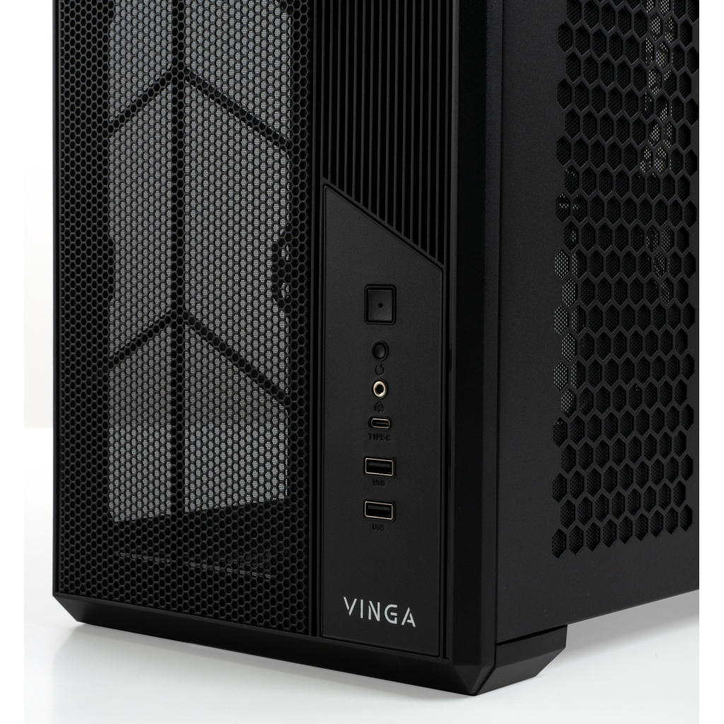 Что касается внешних соединений, корпус Vinga Eclipse Black оснащен разъемами для аудио и 1 x USB 3.1 type C, что позволяет с легкостью подключать современные периферийные устройства.
