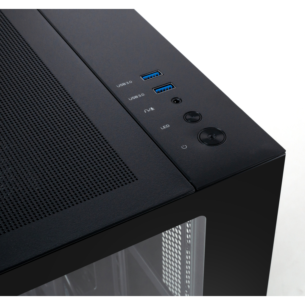 Прозрачные боковая и передняя панели создают уникальный стиль и позволяют демонстрировать красоту внутренней конфигурации компьютера. Благодаря этой особенности, корпус становится не только функциональным, но и привлекательным дополнением к любому рабочему столу, придавая системе более индивидуальный вид.