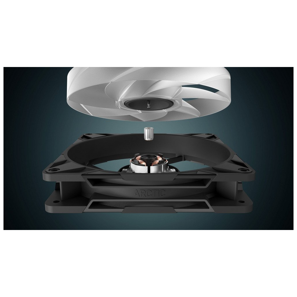 Вентилятор забезпечує високу продуктивність на низьких обертах, створюючи більший повітряний потік і статичний тиск при всього лише 25 дБ(A) — ідеально для тихого та потужного охолодження.