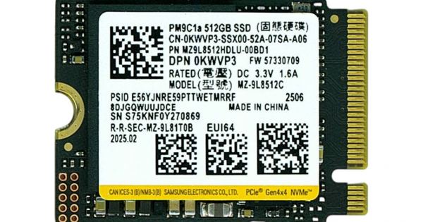 Серия - Samsung PM9C1a, 512 GB, V-NAND TLC, M.2, PCI Express 4.0 x4, Скорость чтения - 4100 Mb/s, Скорость записи - 3000 Mb/s, 30 х 22 х 2.38 мм