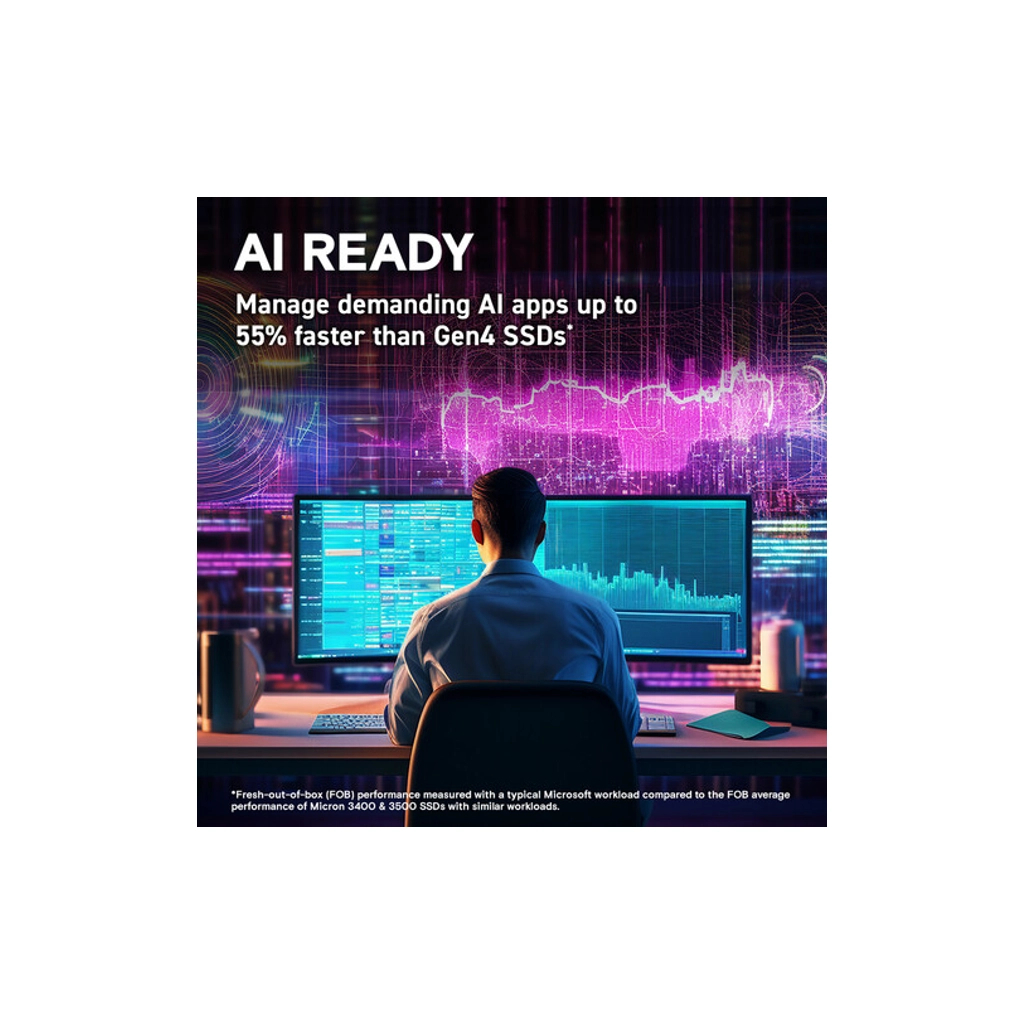 Серия - Crucial T705, 2 TB, 3D TLC NAND, M.2, PCI Express 5.0 x4, Скорость чтения - 14500 Mb/s, Скорость записи - 12700 Mb/s, 80 х 22 х 2.38 мм