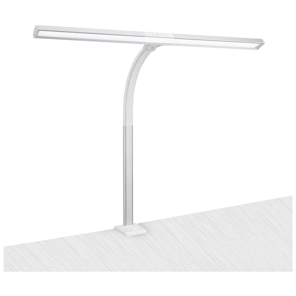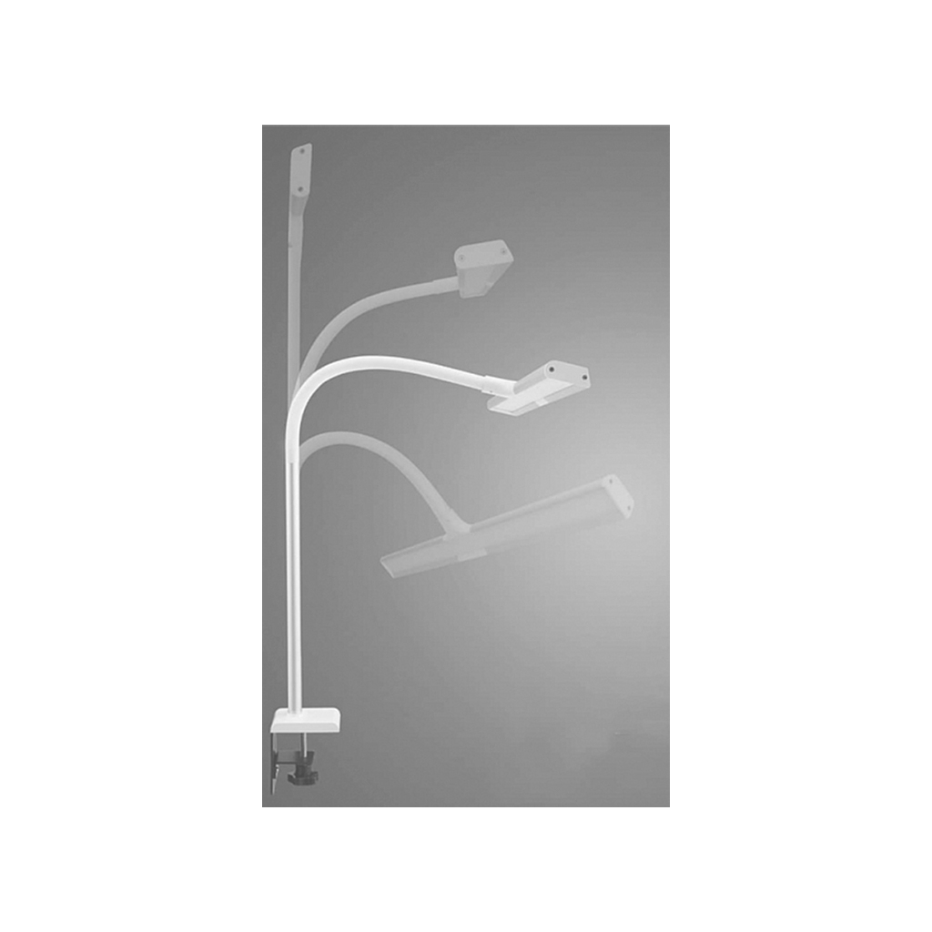 Еще одной отличительной особенностью данной модели является ее гибкая рукоятка. Благодаря этому лампа вращается абсолютно в любую сторону и гнется под любым углом. На плафоне лампы расположены: кнопка питания, регулировки яркости и выбора режима освещения. Лампа устанавливается на столешницы толщиной от 0 до 9 см и фиксируется с помощью струбцины.