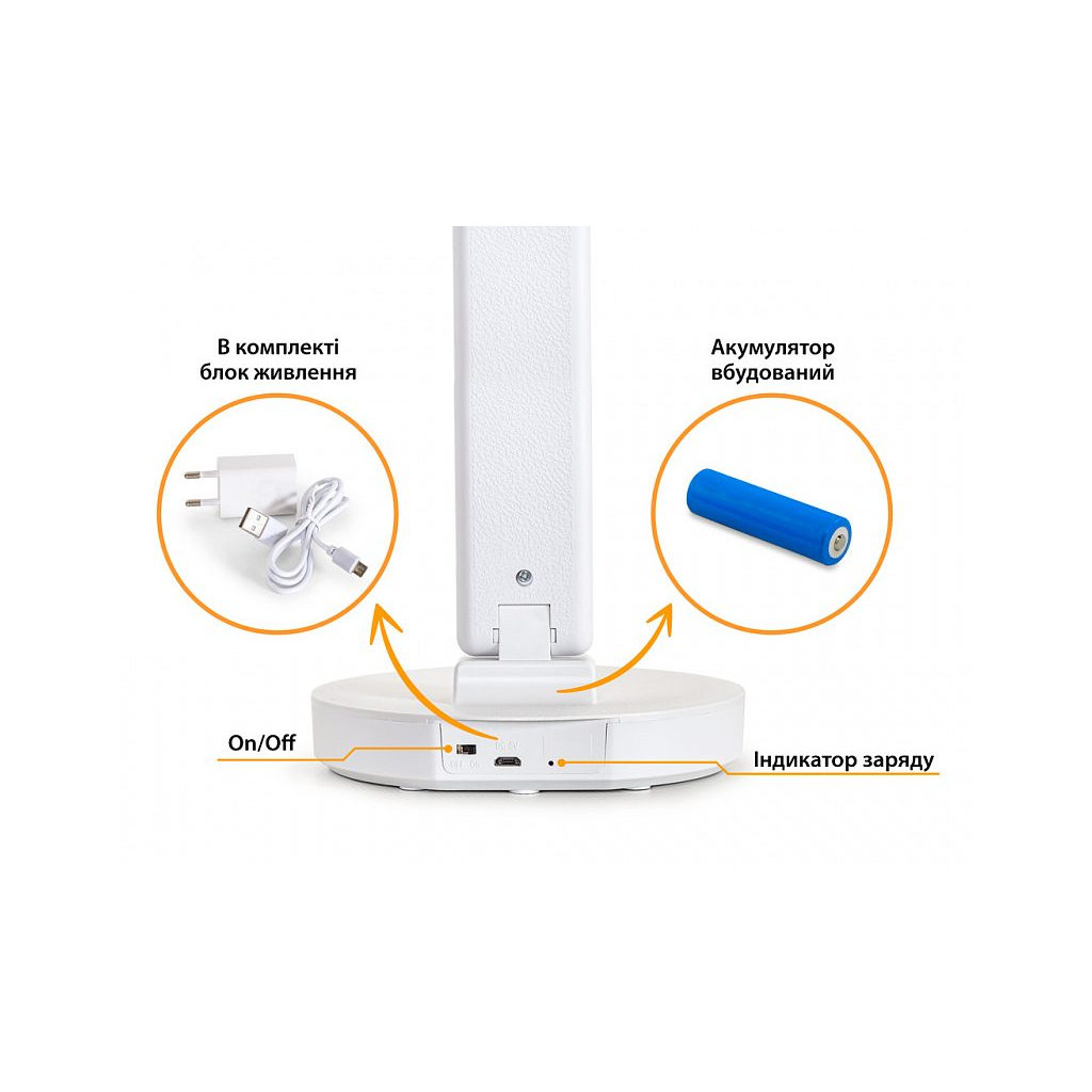 Тип лампы - светодиодная (LED), Крепление - подставка, встроенная (незаменяемая), Выключатель - сенсорный, нет, есть, Материал - пластик, Цвет - белый