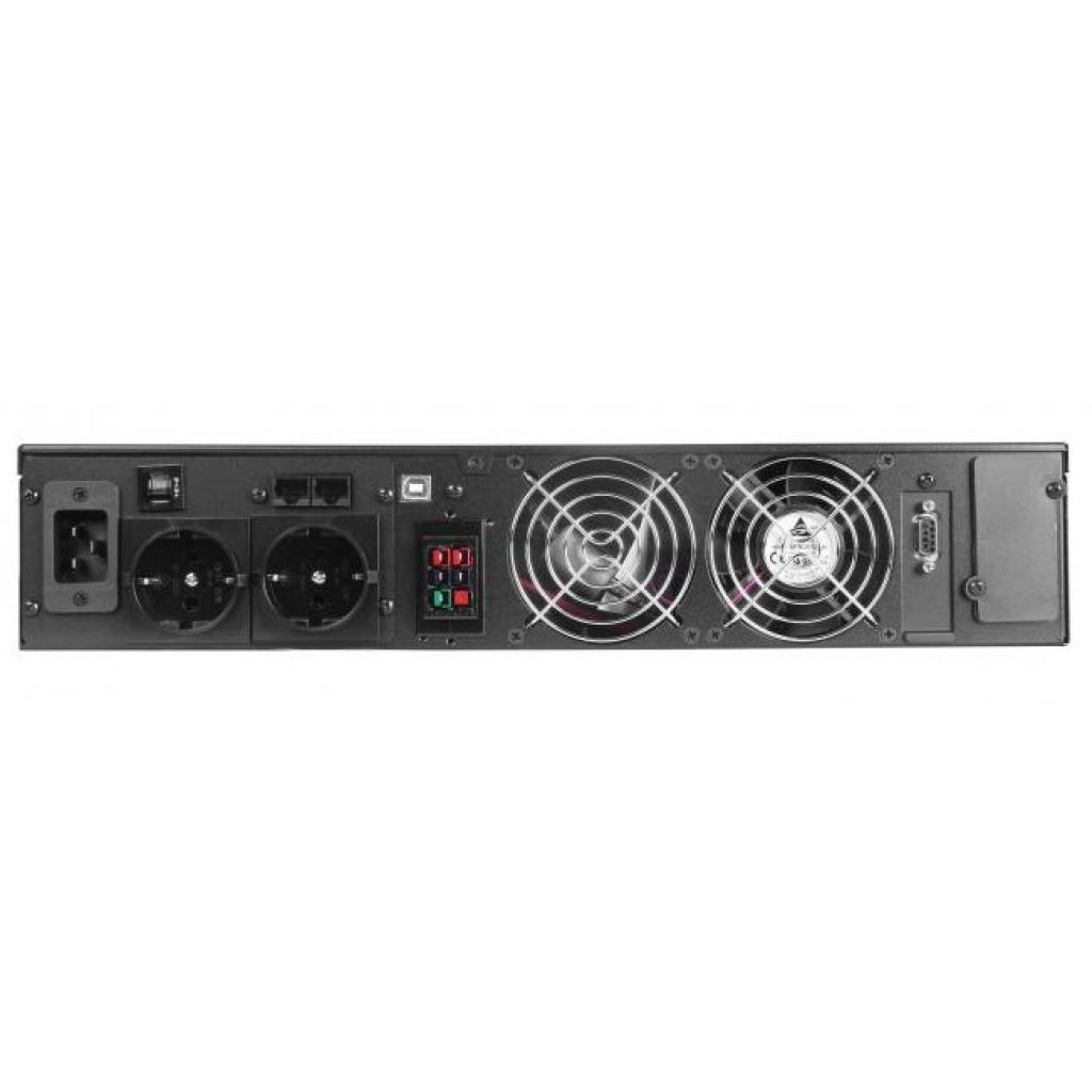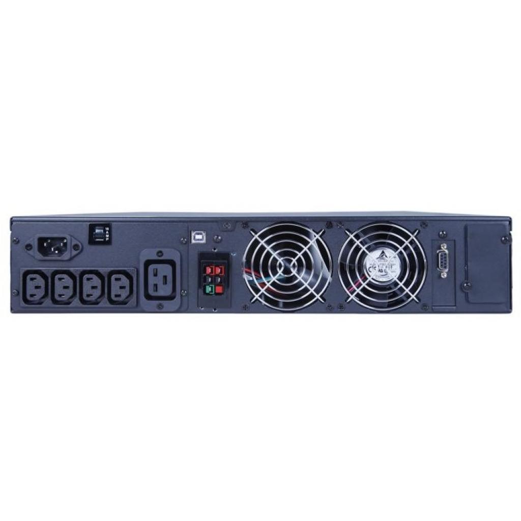 Данный ИБП оснащен четырьмя IEC розетками, позволяя подключать сразу несколько устройств. Дополнительно, защиту ваших данных обеспечивает фильтр RJ-45, который служит для уменьшения влияния электромагнитных помех на сетевые сигналы. Интерфейсы подключения включают USB, RS-232 и SmartSlot, что позволяет удобно взаимодействовать с различными системами управления и мониторинга.