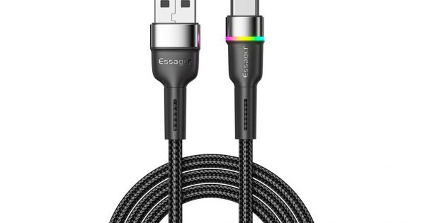Дата кабель USB 2.0 AM to USB-C 0.5m 3A LED black Essager (EXCT-XCDB01)
