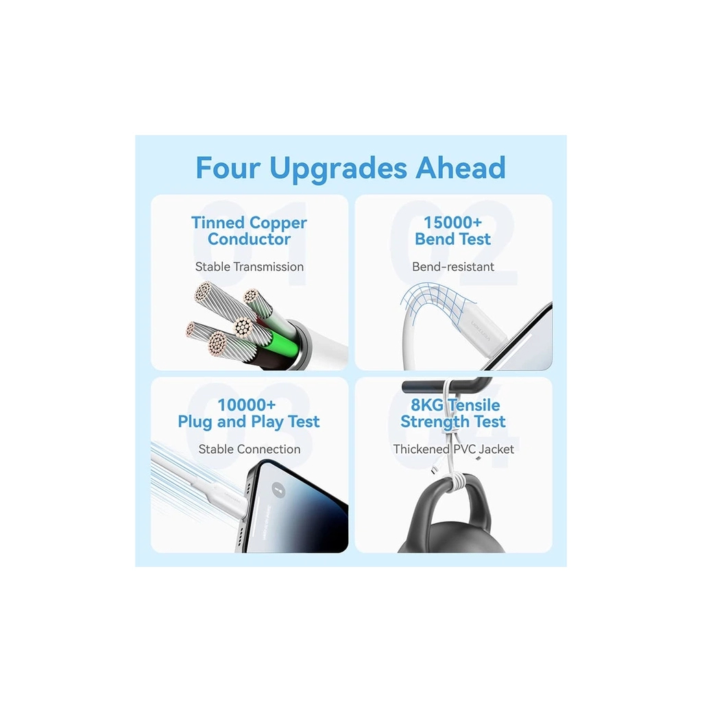 Кабель Vention USB 2.0 Type-A Male to Lightning Male 2.4A ─ надежный кабель для зарядки и синхронизации данных для устройств Apple. Прочная оплетка выполнена из приятного на ощупь PVC, который убережет сердечник кабеля от возможных повреждений. Максимальная пропускная способность кабеля – 2,4 А. Он способен быстро восстановить энергию смартфона. Установка соединения между устройствами осуществляется через USB-A ─ Lightning. Длина кабеля составляет 1м.