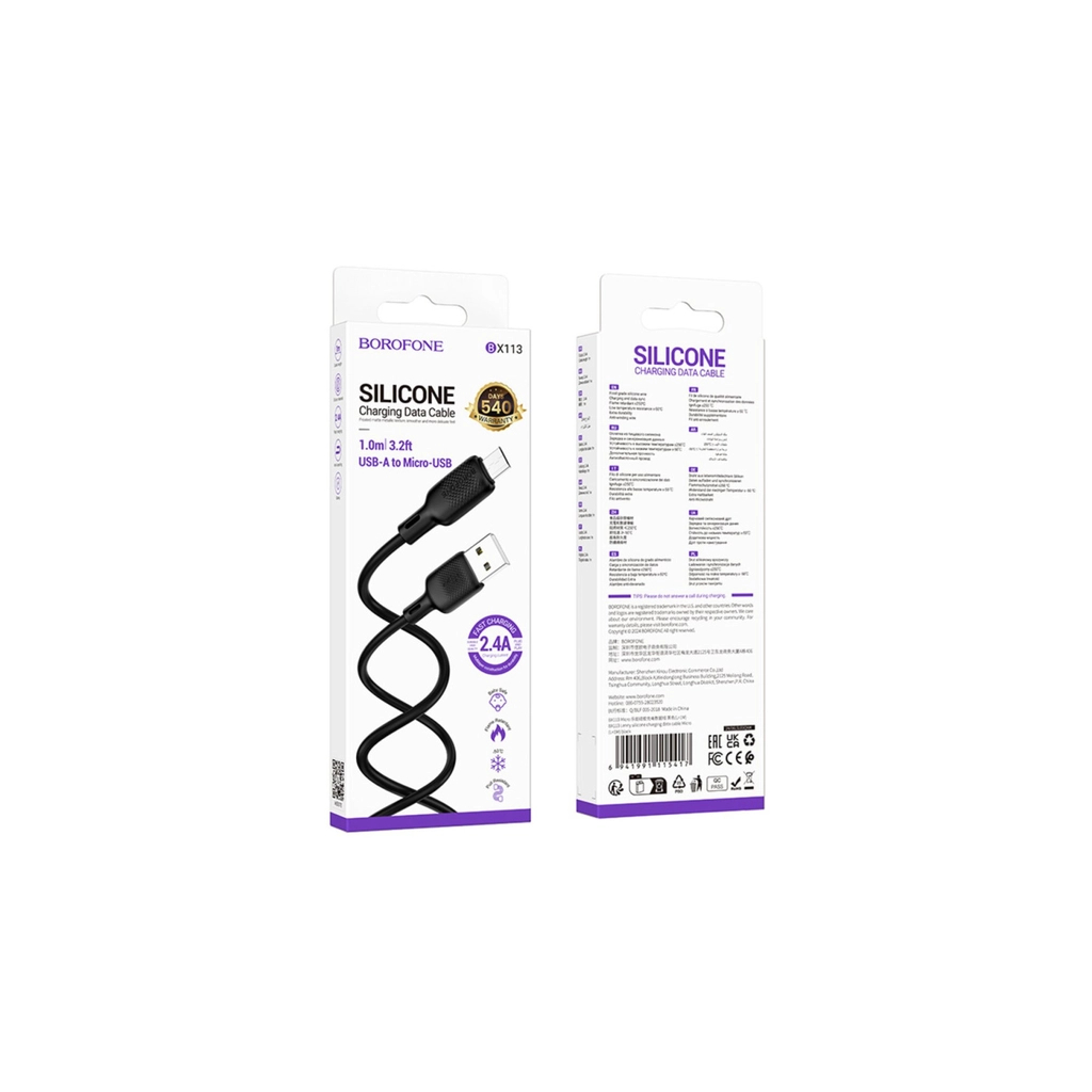 Кабель BOROFONE BX113 Lenny USB-A to Micro-USB – это стильный и функциональный кабель в мягкой силиконовой оплетке, предназначенный для эффективной зарядки, синхронизации и передачи данных между устройствами. Ток до 2.4 A оптимизирован для поддержания быстрой зарядки ваших девайсов. Кабель обеспечивает надежную и стабильную передачу данных между устройствами, а малый вес и компактный дизайн делают его удобным для переноски и использования в дороге. Силиконовая оплетка не только придает кабелю стильный вид, но и укрепляет его, делая более устойчивым к износу и предотвращая запутывание.