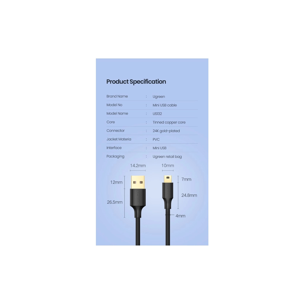 Дата кабель USB 2.0 AM to Mini 5P 1.0m US132 black UGREEN (10355)