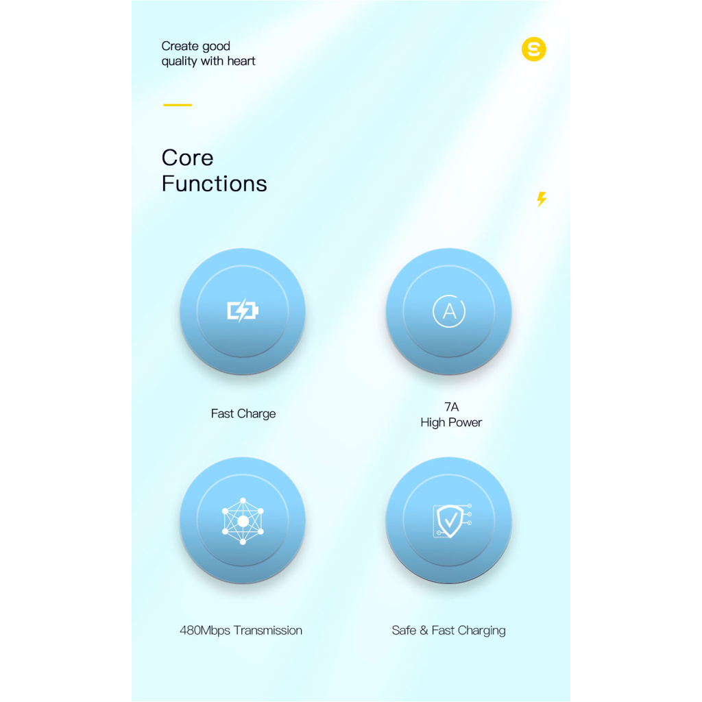 Плетеный кабель Essager USB-A to USB-C 7A выполнен из качественных материалов. По всей его поверхности можно обнаружить нейлоновую защитную оплетку. Прочный материал не трескается и не рвется. За счет нейлоновой оплетки, кабель можно сгибать на 360°. Сам кабель выполнен из термопластичного эластомера, а коннекторы — из алюминиевого сплава с разъёмами USB-A to Type-C. Безопасный заряд батареи Кабель Essager имеет встроенную защиту, которая устраняет перегрев и перегрузку. Наполняйте энергией ваше устройство быстро и безопасно. Высококачественный кабель Essager USB-A to Type-C Cable 7A идеально совместим с любым устройством с разъемом USB-C.