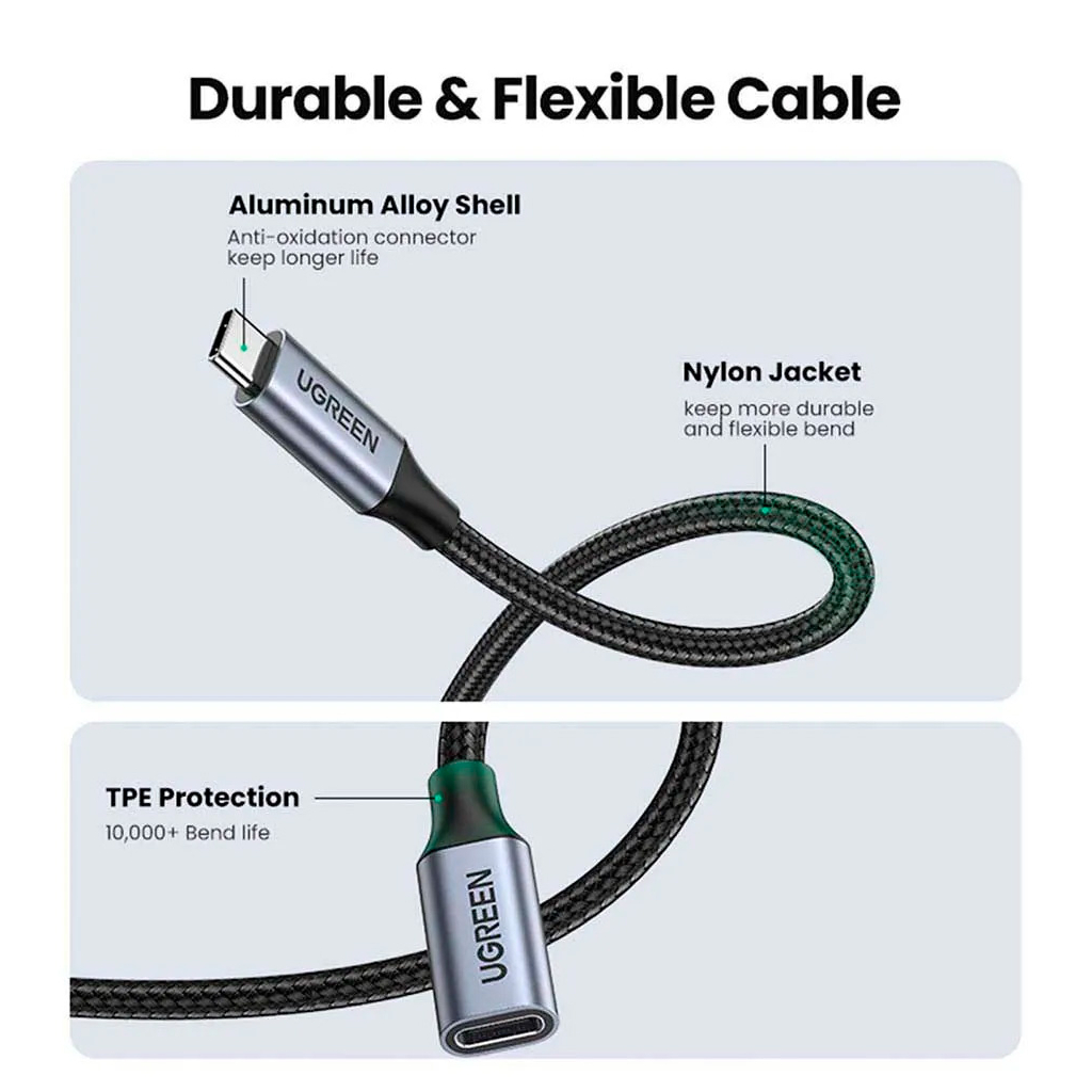Дата кабель USB-C M/F 0.5m 5A USB 3.1 Gen2 10Gbps black UGREEN (80810)