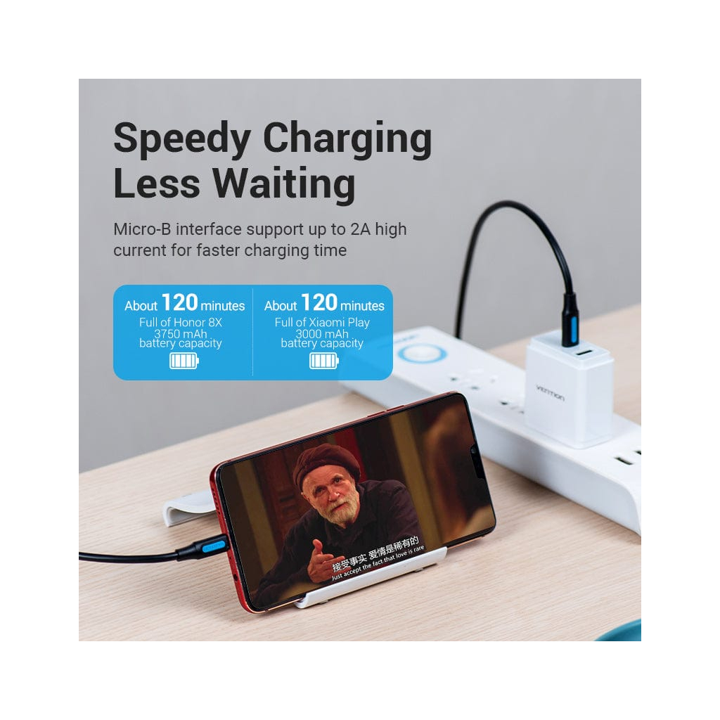 Vention USB-C to Micro-B Cable (COVBF) - дата-кабель USB-C → Micro-USB (Micro-B) от Vention, черного цвета, длиной 1,0м, с поддержкой тока до 2A и стандарта USB2.0 (480Мбит/с).