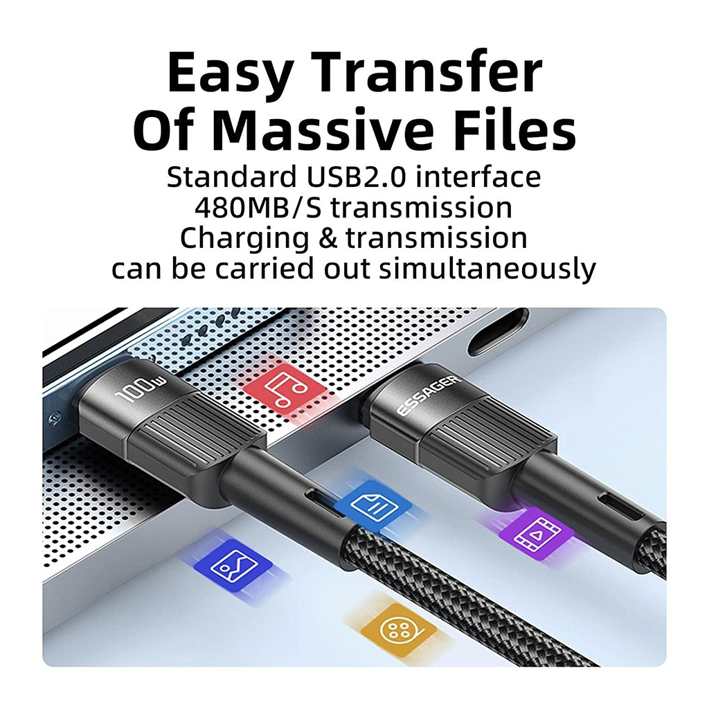 Кабель Essager имеет встроенную защиту, которая устраняет перегрев и перегрузку. Он также обеспечивает не менее быструю передачу данных со скоростью 480 Мбит/с. Идеально совместим с любым устройством USB-C.