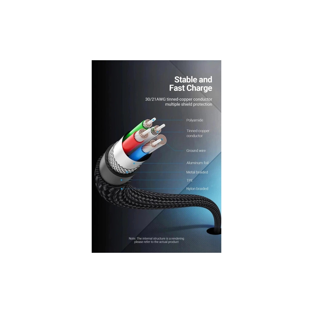 Оплетка кабеля выполнена из качественных материалов, способных выдержать значительные нагрузки во время эксплуатации. Он не боится перегибов, изломов и транспортировки без защитного чехла.