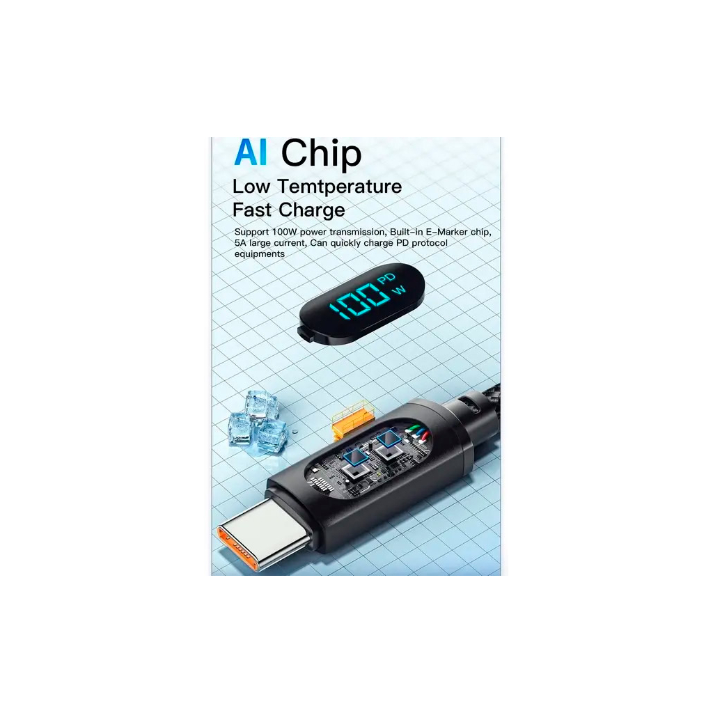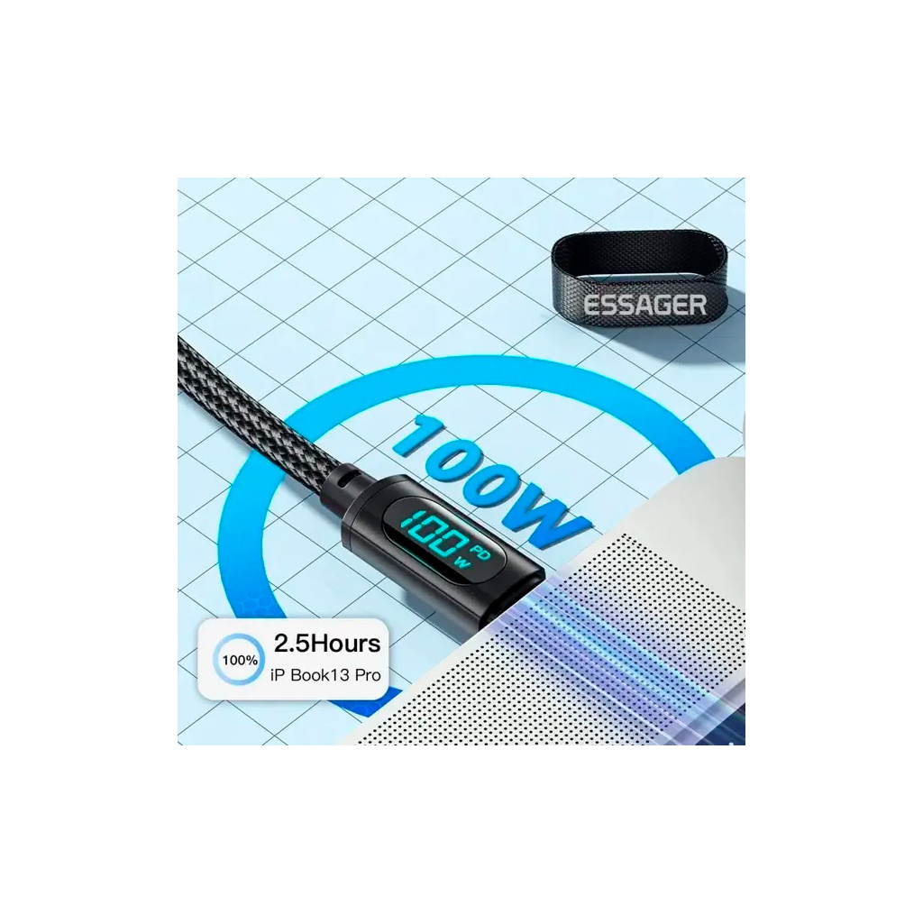 Особенности кабеля Essager Led Digital Display Type-C to Type-C (100W, 5A):