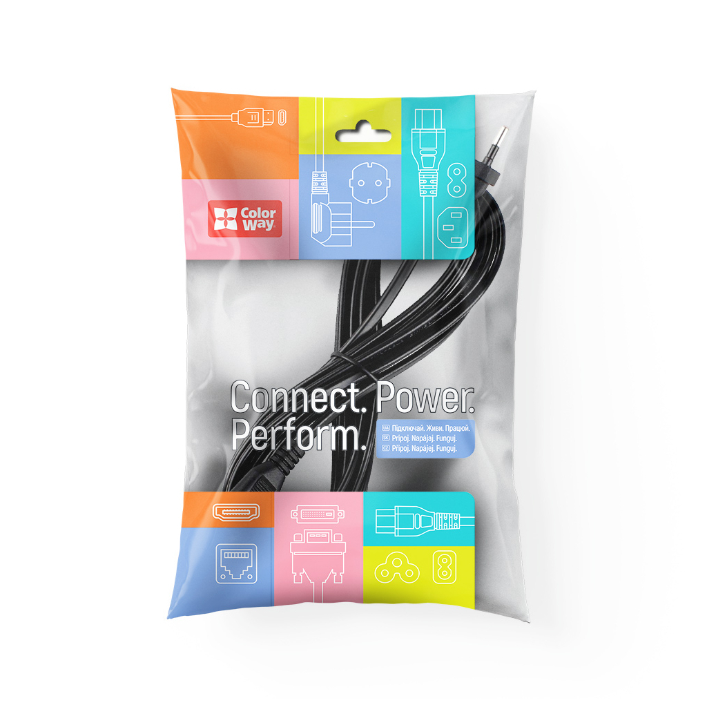 Кабель живлення ColorWay C7 — компактне рішення для підключення техніки з двоконтактним роз’ємом C7 (IEC 60320) до електромережі. Ідеально підходить для ноутбуків, ігрових приставок, зарядних станцій, аудіо- та відеотехніки, а також інших пристроїв, що не потребують заземлення.
