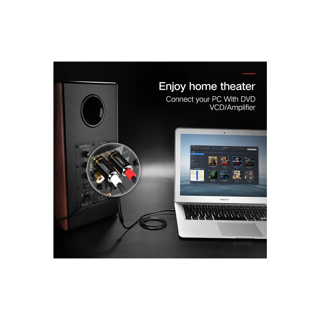 Кабель Ugreen AV116 3.5 mm to 2RCA Audio Cable призначений для з'єднання аудіовходів/виходів мультимедійних та аудіопристроїв (звукових адаптерів комп'ютерів, побутової аудіоапаратури тощо). Кабель Ugreen AV116 3.5 mm to 2RCA Audio Cable виготовлений із міді, а конектори поміщені в надійні металеві гільзи, що забезпечує тривалу роботу кабелю без збоїв.