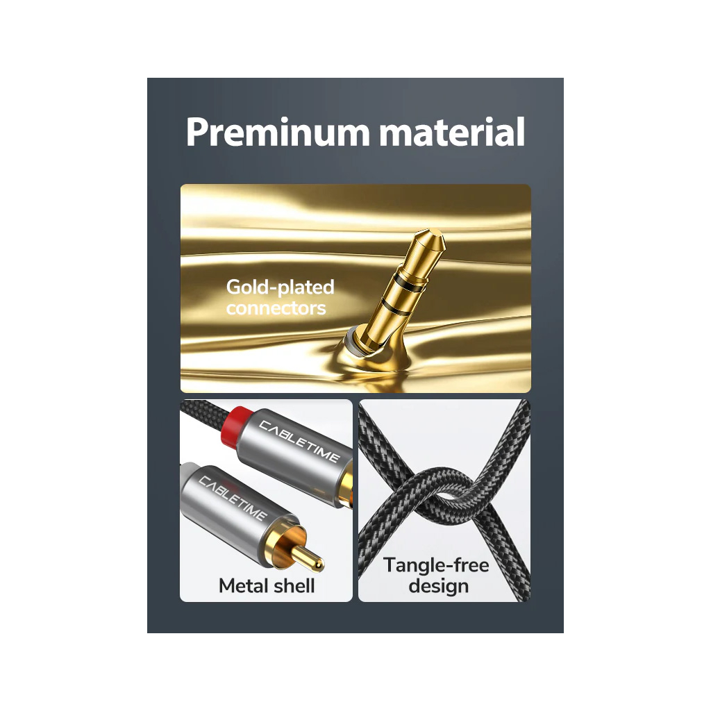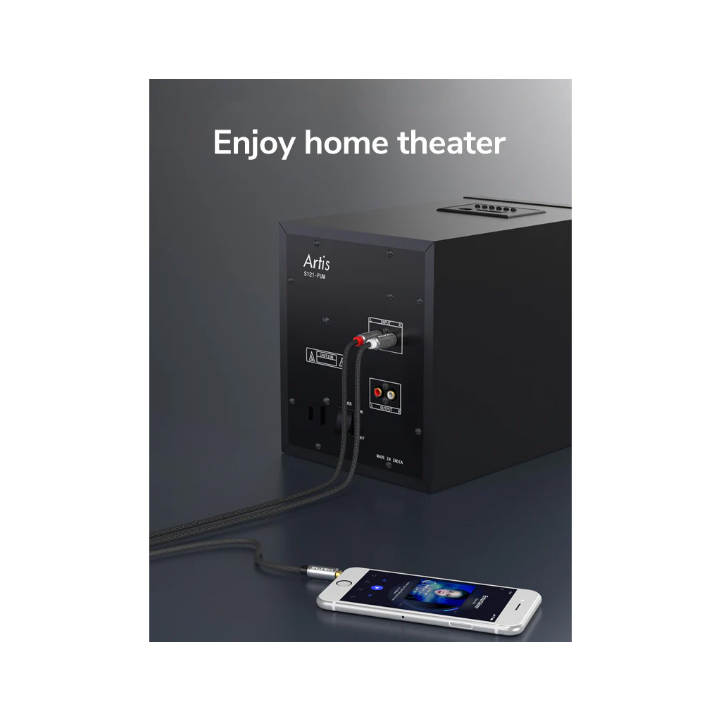 Кабель використовується для передачі аудіосигналу, з'єднує стандартний роз'єм для навушників 3,5 мм з двома аудіо роз'ємами RCA.