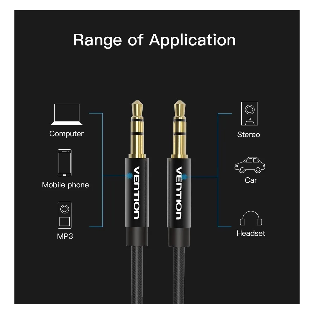 Кабель мультимедійний 3.5mm M to 3.5mm M 1.0m fabric black Vention (BAGBF)