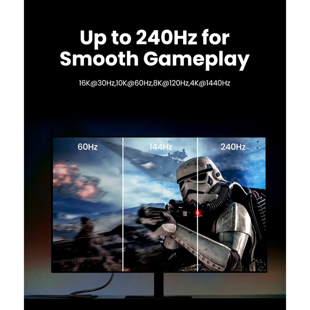 Цей кабель DisplayPort 2.1/2.0 забезпечує безпрецедентну пропускну здатність 80 Гбіт/с, що майже втричі більше, ніж у попередній специфікації DP 1.4, а також стабільну та швидку передачу без втрати сигналу. Примітка. Він обернено сумісний з попередніми стандартами DP 1.4 і DP 1.2.