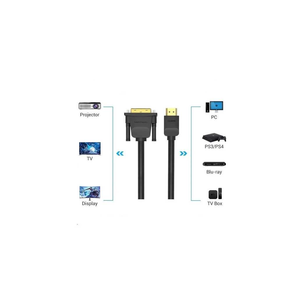 Кабель мультимедійний HDMI M to DVI M 1.0m black Vention (ABFBF)
