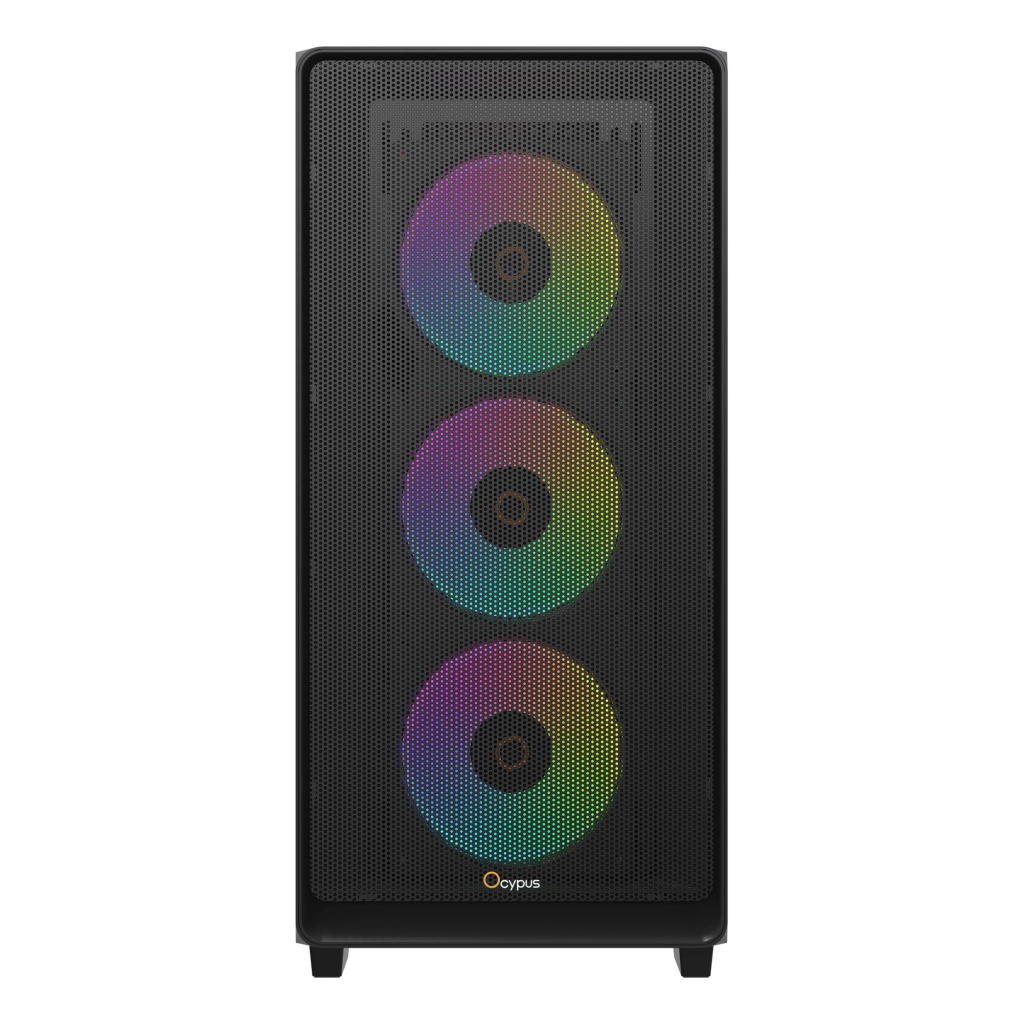 Геймерські, Miditower, ATX, Micro - ATX, Mini - ITX, Слотів розширення - 7, Вентилятори - 3 х 120 мм, Додатково - Back 1x12 см, Top 2x12 см, Bottom 2x12 см, GPU - до 310 мм, CPU - 160 мм, PSU - 180 мм, кулери з підсвічуванням, на передній панелі, 200 х 446 х 360 мм, 4, чорний
