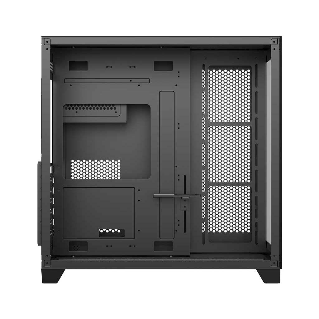 Конструкція корпусу дає змогу встановити материнську плату формату ATX, Micro-ATX або Mini-ITX. Також є місце для встановлення до чотирьох жорстких дисків і одного оптичного приводу.