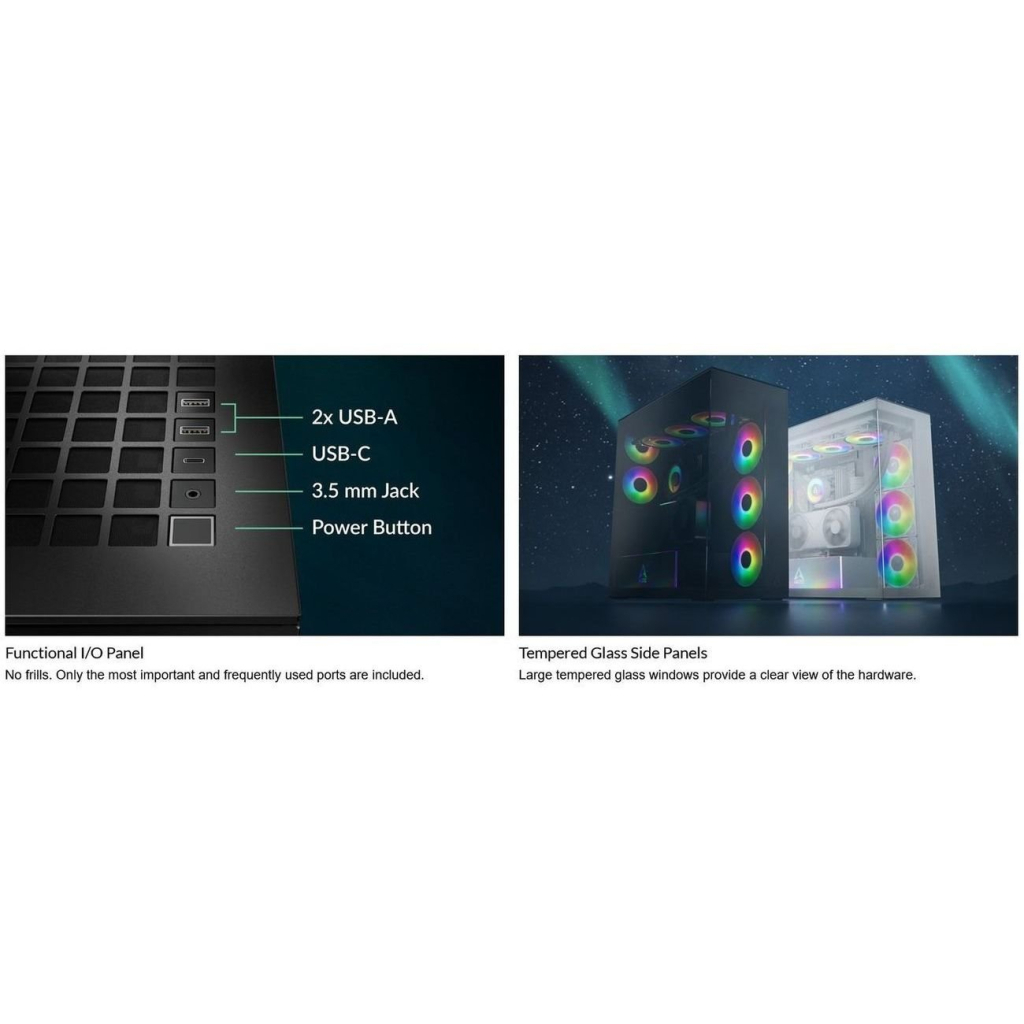 Arctic Xtender Black — це корпус із підтримкою материнських плат E-ATX, створений для користувачів, які цінують поєднання продуктивності та сучасного дизайну. Завдяки розмірам 529 х 231 х 529 мм корпус забезпечує достатньо місця для встановлення потужних компонентів, систем охолодження та масштабних конфігурацій.