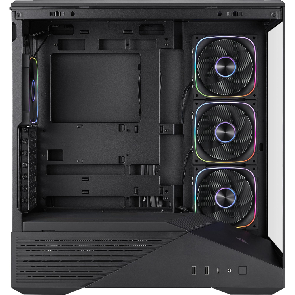 Мультимедійні, Miditower, ATX, Micro - ATX, Mini - ITX, Слотів розширення - 7, Додатково - Back 1x12 см, Bottom 2x12 см, Top 2x12 or 1х14 см, Side 3x12 см, GPU - 420 мм, CPU - 180 мм, ARGB-підсвічування, 483 x 235 x 446, 6.8 кг, чорний