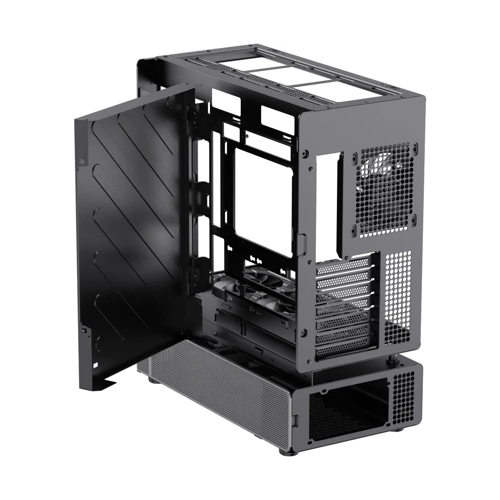 Унікальною перевагою цього корпусу є розширена система охолодження на 270° з боковим розташуванням вентиляторів, камерами для охолодження різних зон та спеціальними зонами вентиляції. Вже встановлені 6 вентиляторів ARGB PWM допомагають підтримувати ідеальний температурний баланс, зберігаючи продуктивність на максимальному рівні.