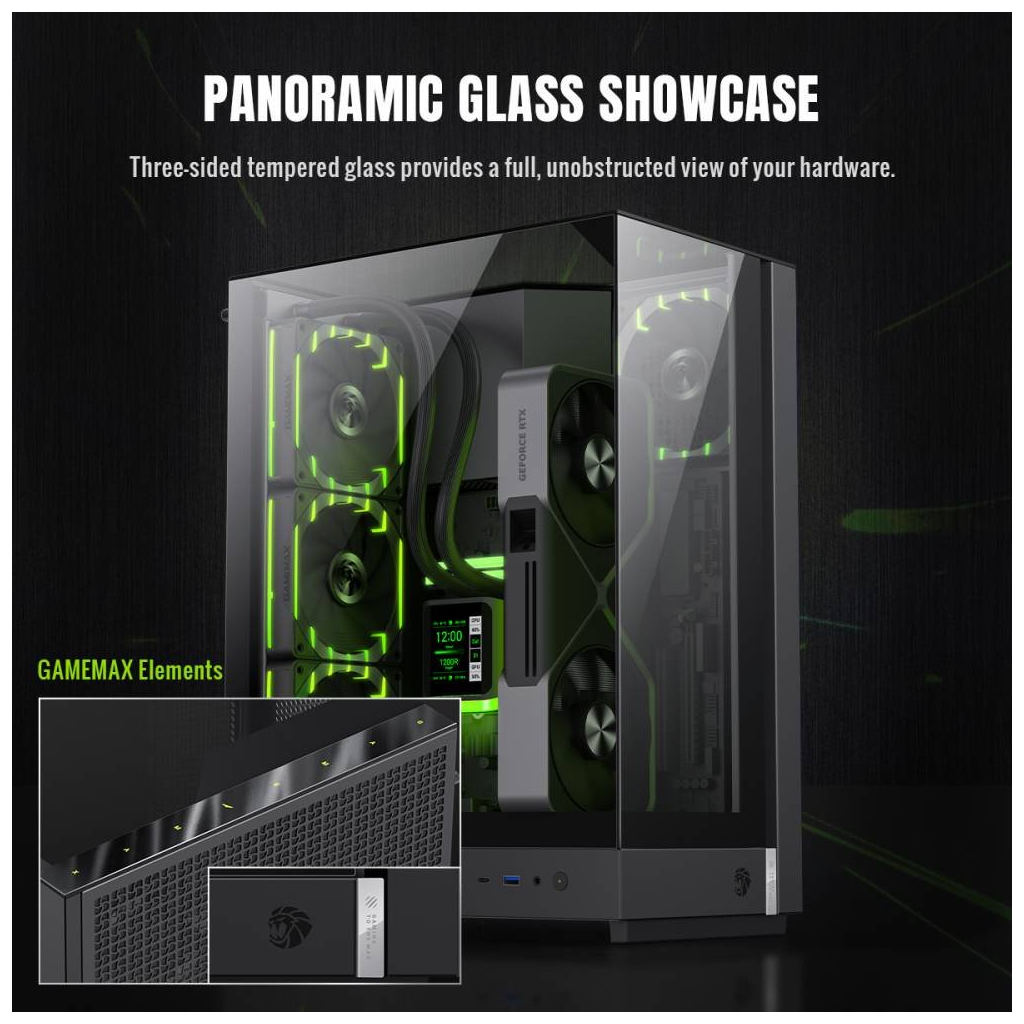 Геймерські, Miditower, Micro - ATX, Mini - ITX, Слотів розширення - 5, Вентилятори - 2 х 120 мм, Додатково - Back 3x12 см, GPU - 382 мм, CPU - 160 мм, ARGB-підсвічування, 340х215х462 мм, 5.7, чорний