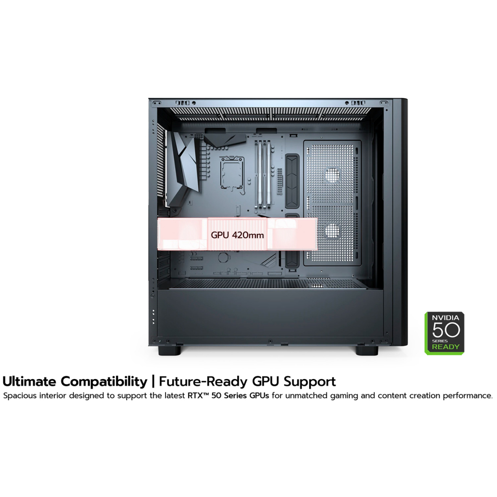 Завдяки чотирьом попередньо встановленим вентиляторам GF120 ARGB PWM цей корпус готовий до складання за лічені хвилини.