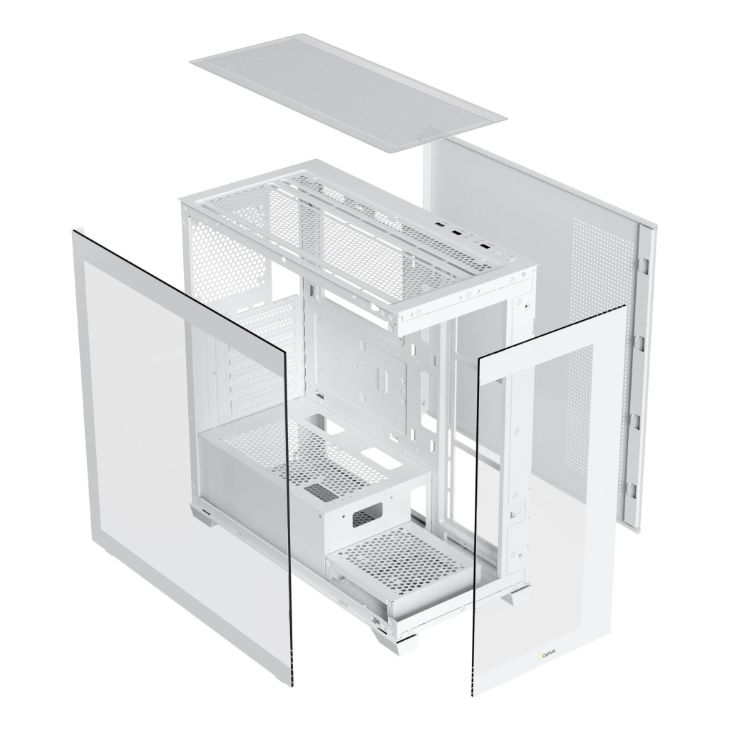 Ocypus Gamma C72 ARGB White — це корпус, створений для тих, хто прагне чистої естетики та повної відкритості у візуальному сприйнятті своєї збірки. Завдяки безколонній конструкції та двосторонньому загартованому склу завтовшки 4 мм внутрішні компоненти проглядаються без перешкод. Панорамний формат підсилює ефект простору, а білий колір корпусу створює контрастний фон, який робить підсвічування та геометрію компонентів більш виразними. Це забезпечує преміальне дизайнерське враження, незалежно від того, чи розглядаєш збірку зблизька, чи з боку.