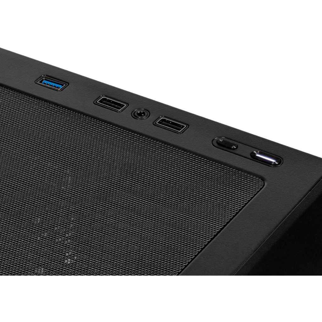 QUBE FLOW виконаний у мінімалістичному чорному кольорі, що надає йому елегантного та універсального вигляду. Передня панель корпусу оснащена сітчастою структурою для максимального припливу повітря, забезпечуючи чудове охолодження внутрішніх компонентів.