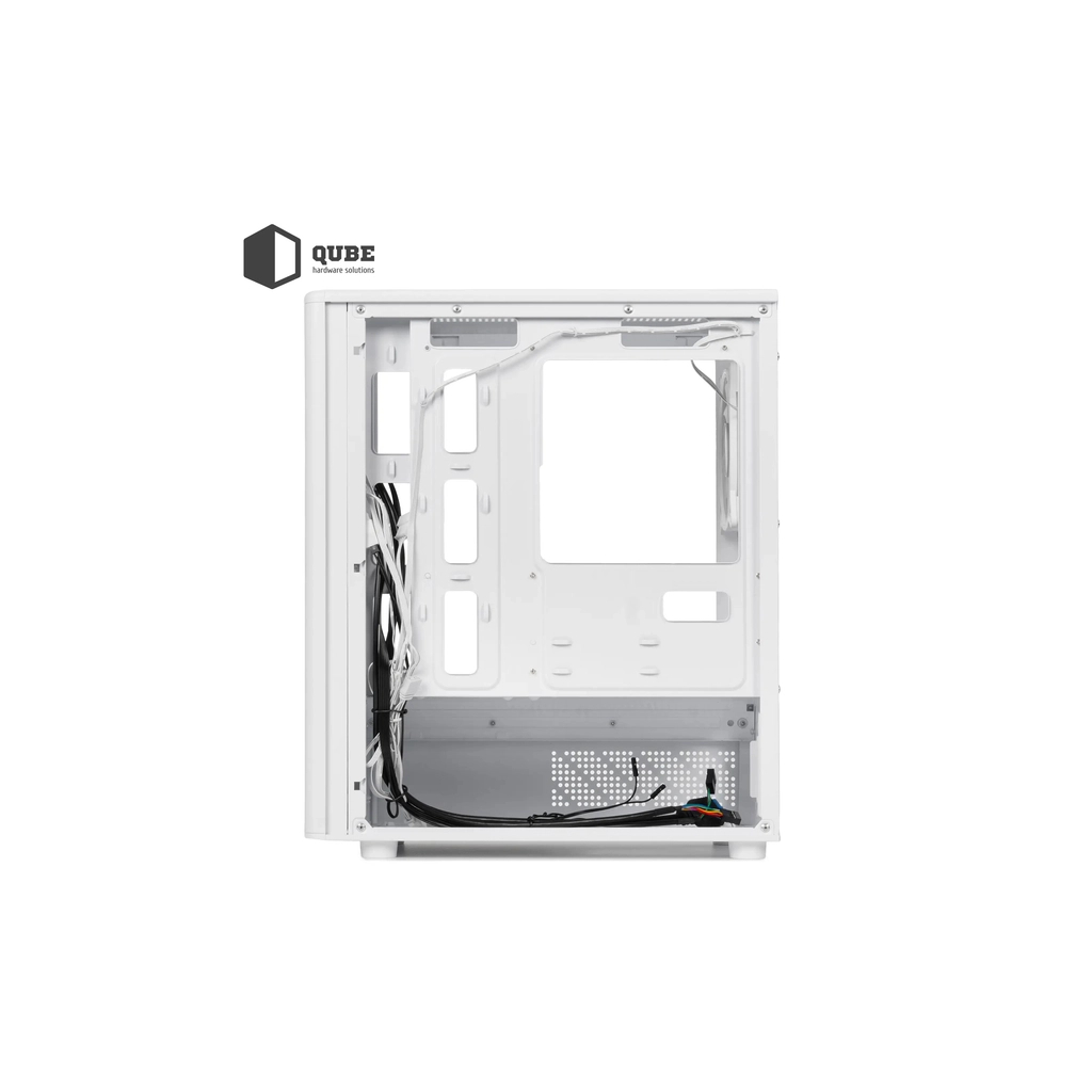 Корпус QUBE GEON ARGB White (GEON_GWNU3) – це сучасне рішення для збирання комп'ютерів формату mATX, яке поєднує стильний зовнішній вигляд та функціональність. Біле виконання корпусу робить його відмінним вибором для тих, хто цінує елегантний дизайн, а фронтальна панель з металевими гратами забезпечує ефективний приплив повітря. Конструкція зі сталі товщиною 0.35 мм гарантує надійність, а бічне вікно із загартованого скла зі зручним розсувним механізмом дозволяє продемонструвати комплектуючі та яскраве підсвічування системи, створюючи завершений візуальний образ.