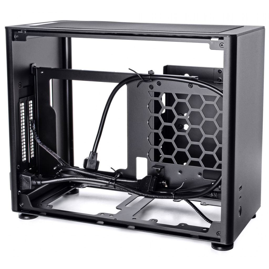Особливість конструкції корпусу — панелі з алюмінієвого сплаву, виготовлені з магнієво-алюмінієвого 2 мм листа. Таке суворе, певною мірою — мінімалістичне виготовлення, чудово підійде для користувачів, які поважають витриманий стиль і елегантність. Тут же в нижній третині панелі виробник виніс високошвидкісний порт USB 3.0, порт Type-C, велику кнопку ввімкнення живлення. На верхній грані розмістився протипиловий фільтр, що перешкоджає потраплянню дрібнодисперсних частинок усередину комп'ютера.