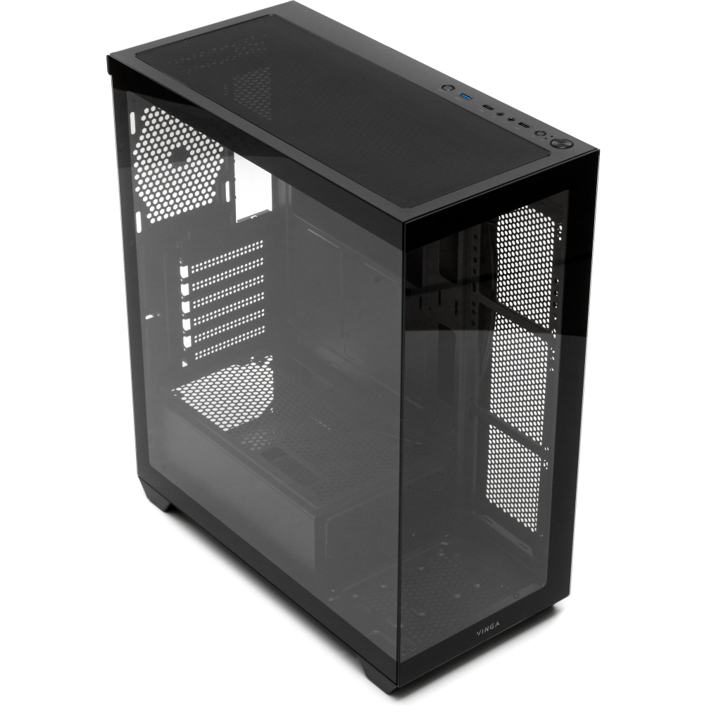 Естетичний дизайн корпусу Vinga Executor підкреслює прозора бічна панель, яка дозволяє милуватись внутрішнім оздобленням вашого ПК. Прозора передня панель доповнює стильний вигляд, надаючи корпусу сучасного та ефектного вигляду. Прогумовані ніжки забезпечують стійкість та зменшують вібрацію, від чого виграють аудіо-оформлення та загальна безпека системи.
