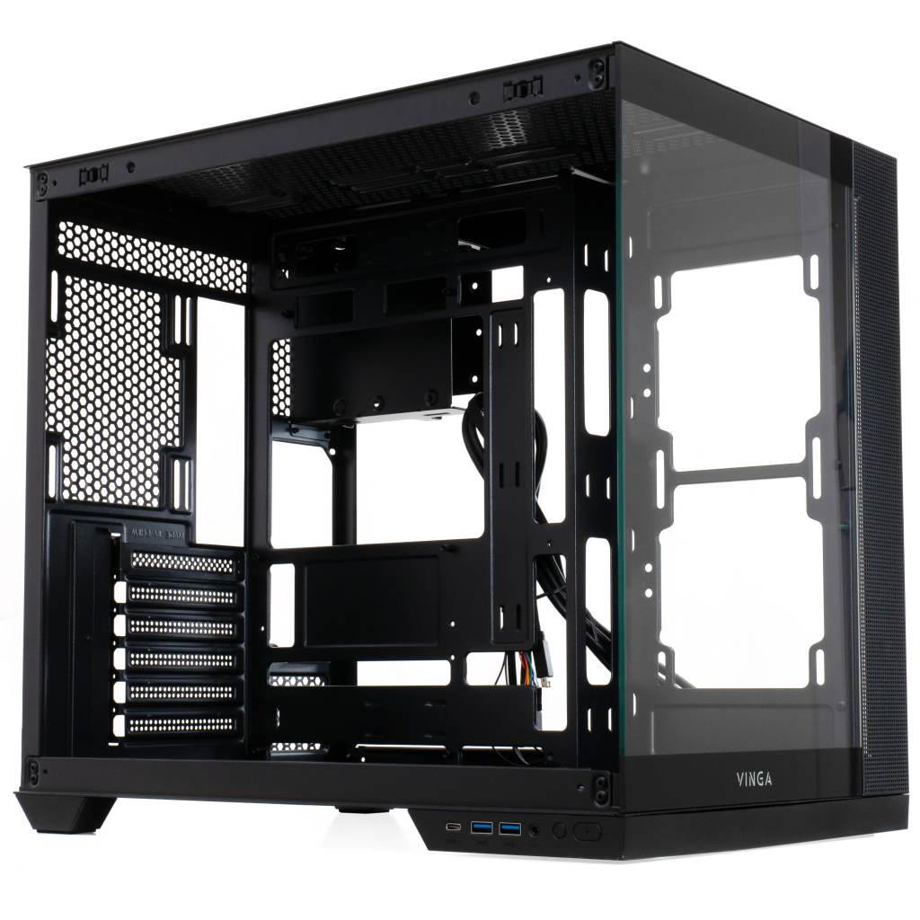 Чорний колір корпусу надає йому стриманого, професійного вигляду, який легко прилягає до будь-якого інтер'єру. Із габаритами 415 х 378 х 285 мм, Vinga Request поєднує компактність з можливостями розширення, дозволяючи його зручне розміщення як у просторих студіях, так і в компактних офісах.