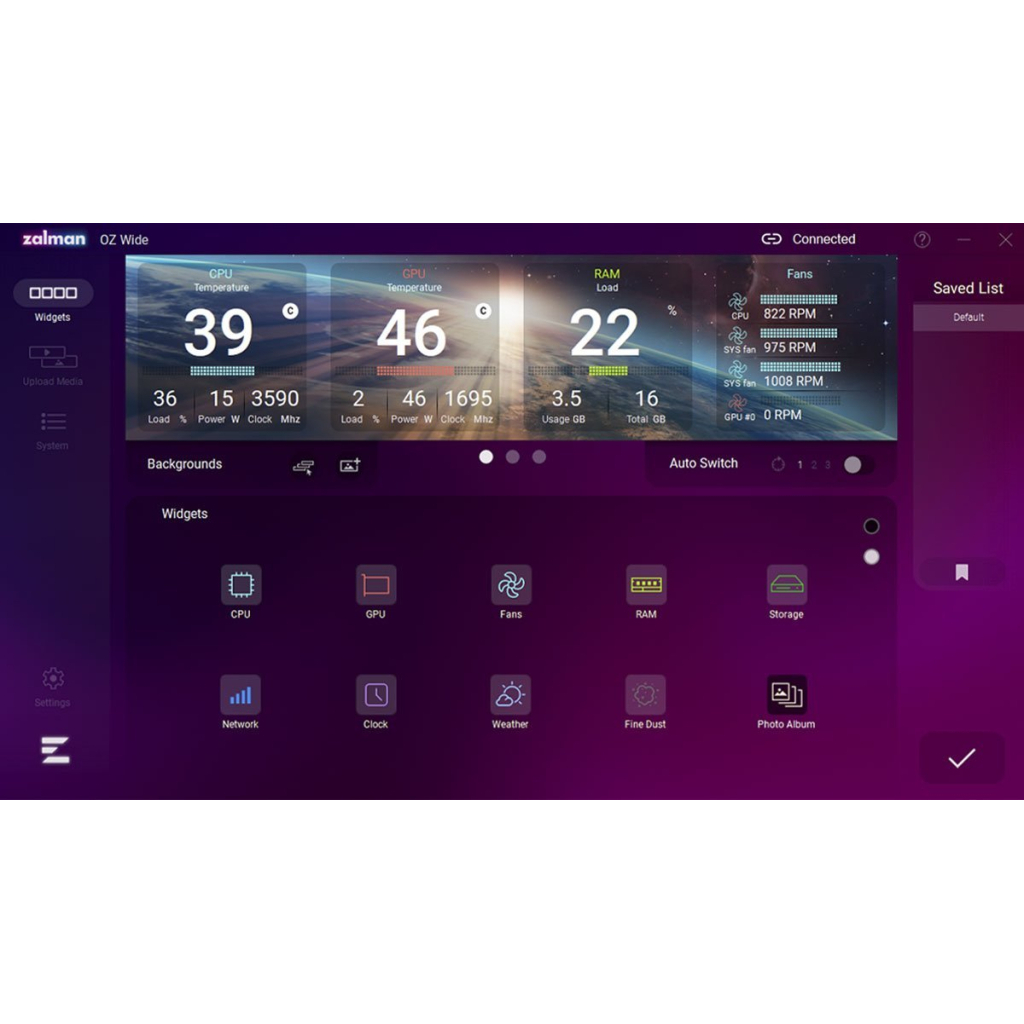 Панорамний корпус Zalman P40 DS BLACK з 9,1 дюймовим дисплеєм для сучасної домашньої або ігрової станції, сумісний із актуальними компонентами та адаптований для BTF материнських плат. Передня та бічна панелі із загартованого скла. Забезпечено активне обдування компонентів за рахунок перфорації металевої поверхні панелей корпусу. Продумано захист від пилу. У комплекті 4 х 120мм ARGB вбудованих вентиляторів, концентратор та тримач для відеоадаптера. Вентилятори на бічній панелі – реверсні: забезпечують приплив повітря ззовні. Вентилятор на задній панелі працює на видув. Додаткова опція – дисплей з роздільною здатністю 1920х462 на бічній панелі, який демонструє в реальному часі інформацію про процесор, відеоадаптер, пам'ять і вентилятори корпусу. Корпус укомплектований усіма необхідними деталями для складання та подальшої експлуатації, в наявності стандартні сучасні актуальні інтерфейси, роз'єми, а також програмне забезпечення, яке можна завантажити з офіційного сайту виробника.