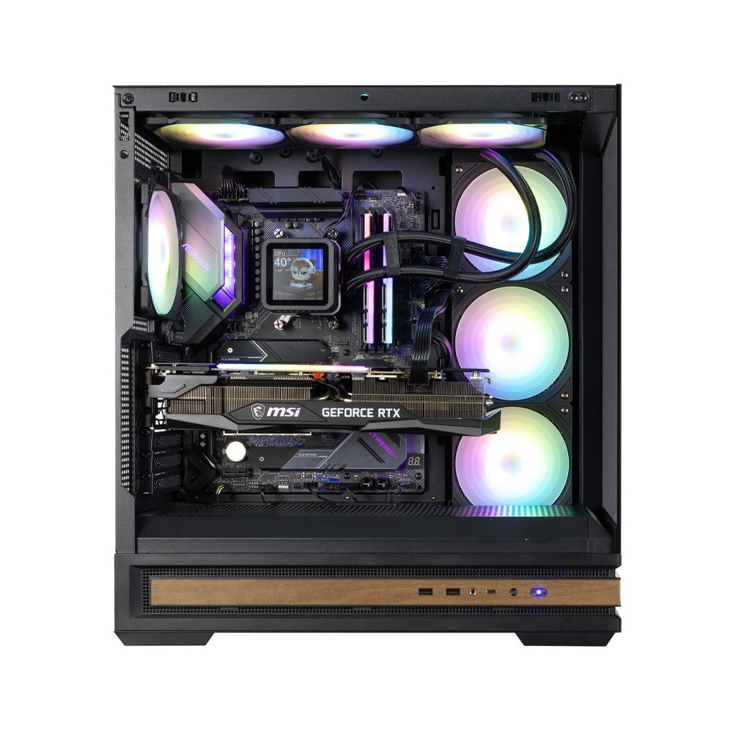 Панорамний корпус Zalman P40 NAMU BLACK для сучасної домашньої або ігрової станції, сумісний з актуальними компонентами та адаптований для BTF материнських плат. Передня та бічна панелі із загартованого скла. Додатковий дизайнерський елемент конструкції – вставка із натурального дерева по периметру корпусу. Забезпечено активне обдування компонентів за рахунок перфорації металевої поверхні панелей корпусу. Продумано захист від пилу. У комплекті 4 х 120мм ARGB вбудованих вентиляторів, концентратор та тримач для відеоадаптера. Вентилятори на бічній панелі – реверсні: забезпечують приплив повітря ззовні. Вентилятор на задній панелі працює на видуві. Корпус укомплектований усіма необхідними деталями для складання та подальшої експлуатації, є стандартні сучасні актуальні інтерфейси та роз'єми.