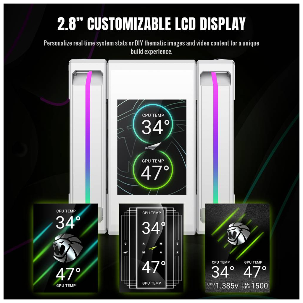 Відображайте температуру, навантаження системи або власні зображення й відео, створюючи унікальний вигляд вашого ПК.