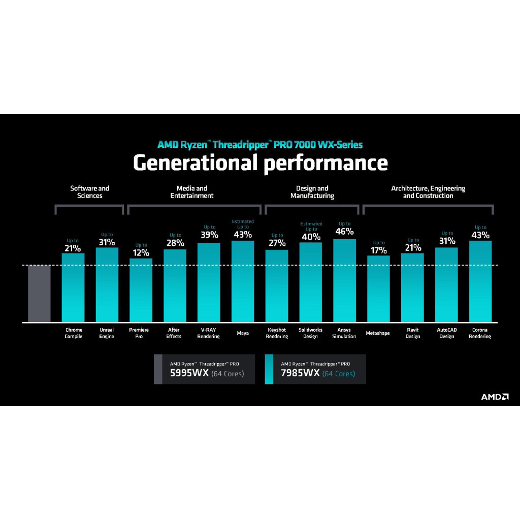 TR5, 24 ядра, 48 потоків, 4.2 GHz, 5.3 GHz, Максимальний TDP - 350 Вт, 5nm, L1: 1.5MB, L2: 24MB, L3: 128MB, немає, AMD Zen 4, BOX без кулера