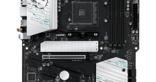 сокет - AM4, чіпсет - AMD B550, DDR4, макс. об'єм оперативної пам'яті - 128 ГБ, швидкість LAN - 1 Гбіт/с, D-Sub (VGA), DisplayPort, HDMI, внутрішні - 2 x M.2 2280, 4 x Sata 6.0 Gb/s, Wi-Fi (802.11 a/b/g/n/ac), Bluetooth 4.2, Micro-ATX