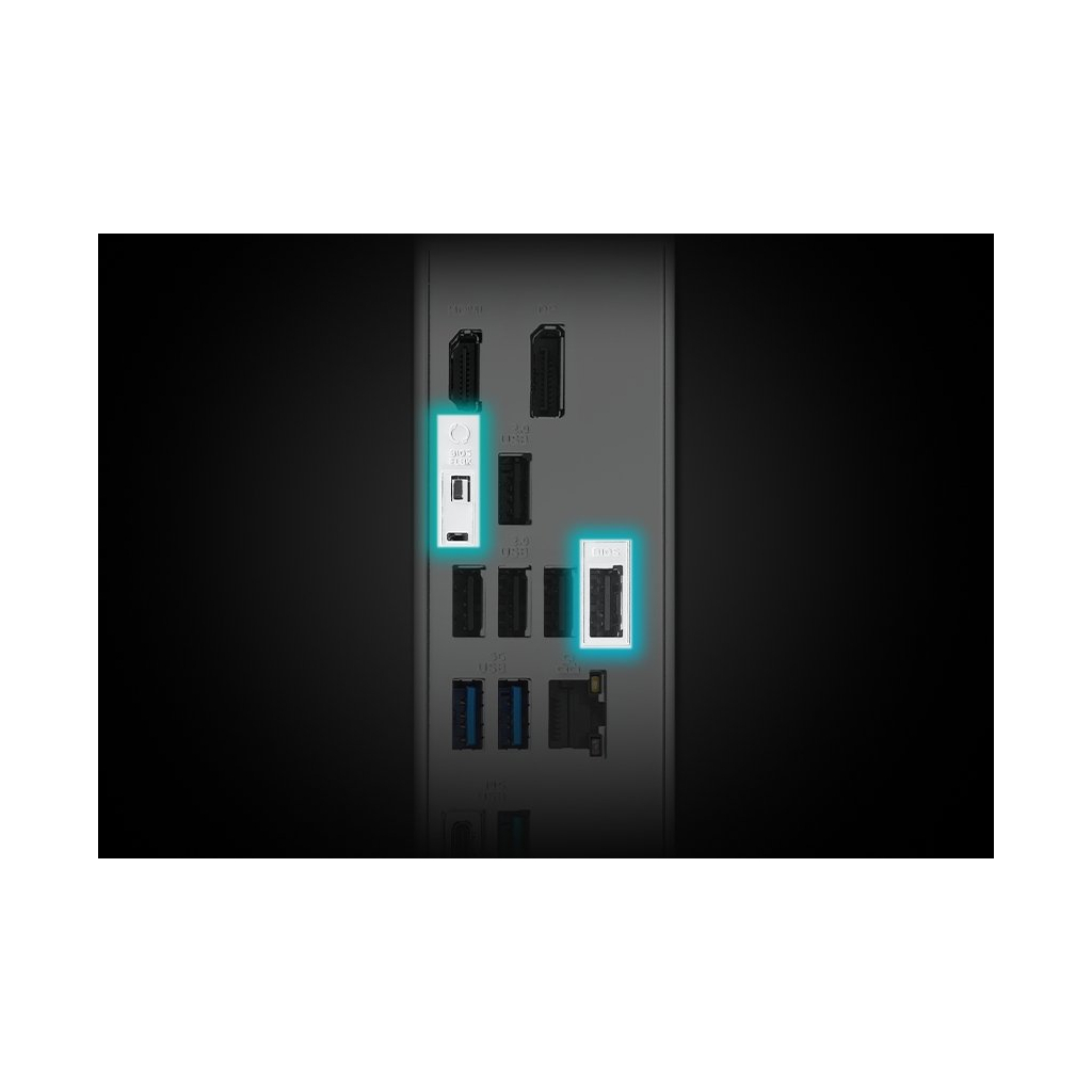 На додаток до видатних характеристик, ця материнська плата оснащена потужними бездротовими можливостями завдяки підтримці Wi-Fi 6E. Це гарантує швидке та стабільне бездротове підключення в будь-яких умовах, особливо важливе для онлайн-ігор та стрімінгу без затримок. Для тих, хто надає перевагу провідним з'єднанням, плата забезпечує 1Gb Ethernet через порт Realtek, надійний при високих навантаженнях.